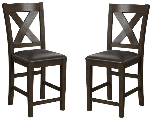 This farmhouse inspired set of two Counter Height Stools, gives your dining or entertaining space a breath of fresh air. With wood frames and a dark espresso wire brush finish, these stationary counter stools have a faux leather upholstery seat for extra comfort.Read More