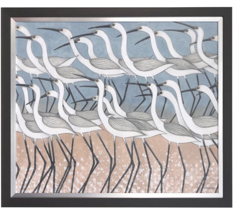 Adorn your walls with this wall art from Stylecraft. Shown in a beige/gray/light blue/white finish and features the beauty of egrets migrating imagery subject. This aesthetic piece will add uniqueness and dimension to any room or space.Read More