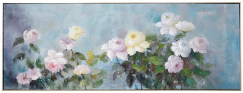 Panoramic Bouquet is a hand-painted, stretched, and framed canvas artwork that features an expansive, vibrant floral arrangement. This piece captures the beauty and diversity of a bouquet with rich colors and detailed brushstrokes, making it a striking focal point.Read More